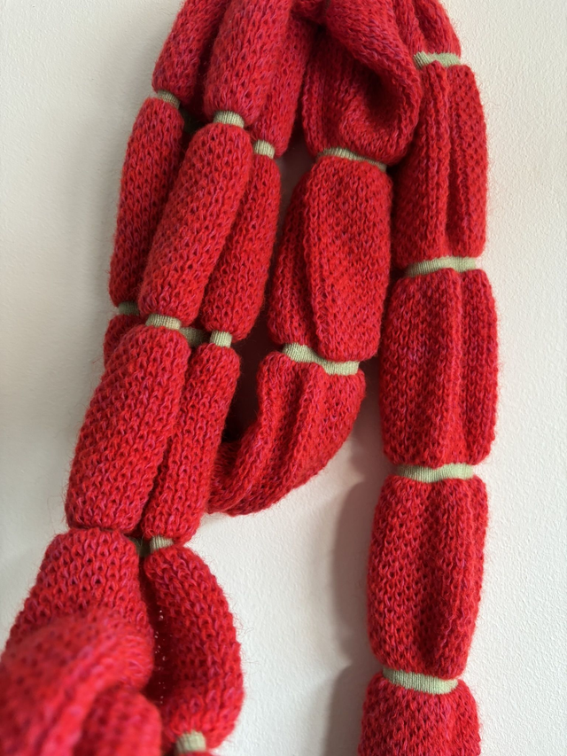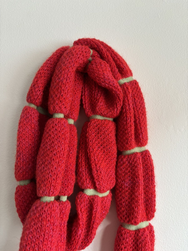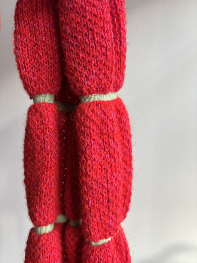 écharpe laine mélangé, majorité mohair, rayure avec une gomme elastique. longueur : approx 190cm, un tour de cou.